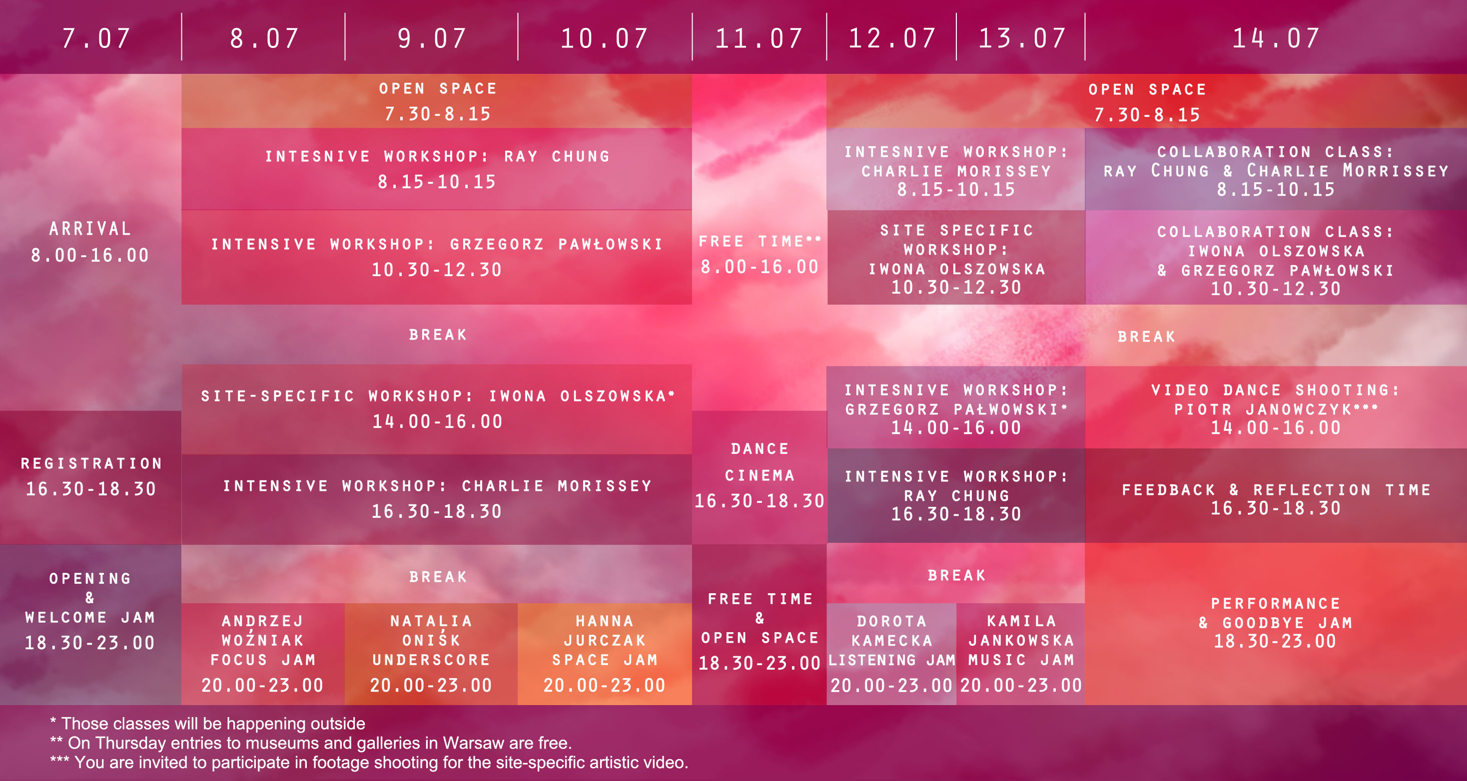 The whole festival (except Site-Specific intensive workshop) will be held in